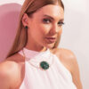 A esmeralda, em sua cor vibrante e profunda, reflete a renovação contínua que a mulher vive, seja no seu papel como líder, mãe, criadora ou sonhadora.