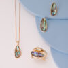 Tamanho da pedra: triângulo escaleno facetado 9x18mm.