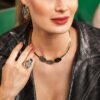 Este brinco possui detalhes em pedras fragmentadas e pedra natural de geodo, extraída do interior de uma ágata, possuindo detalhes em drusa, com formato e tamanhos variados, tornando-se assim uma peça única.