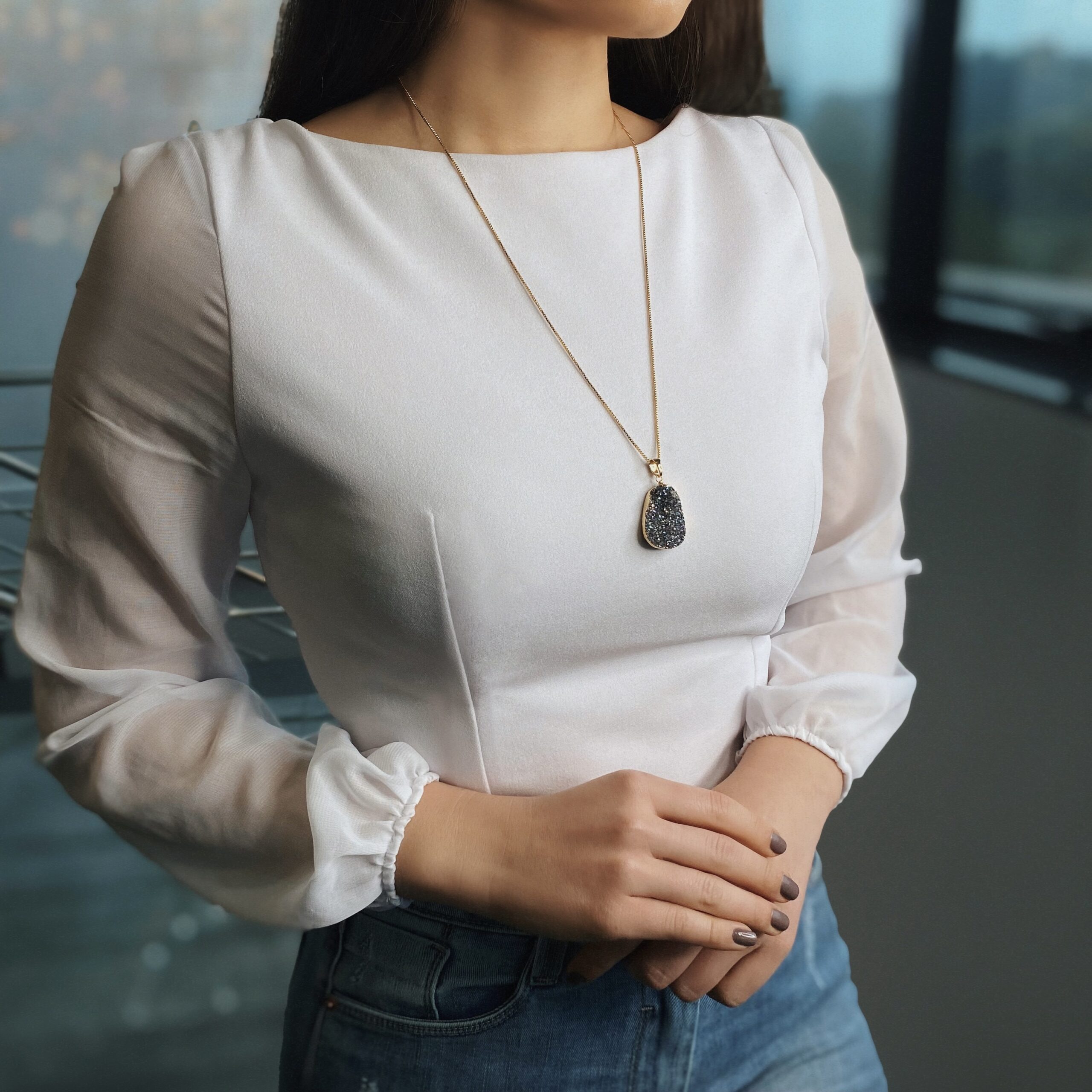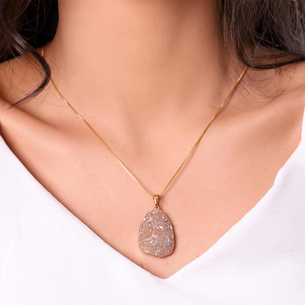 Pingente avulso, sem corrente, com pedra formato irregular de drusa. Por se tratar de pedras naturais,